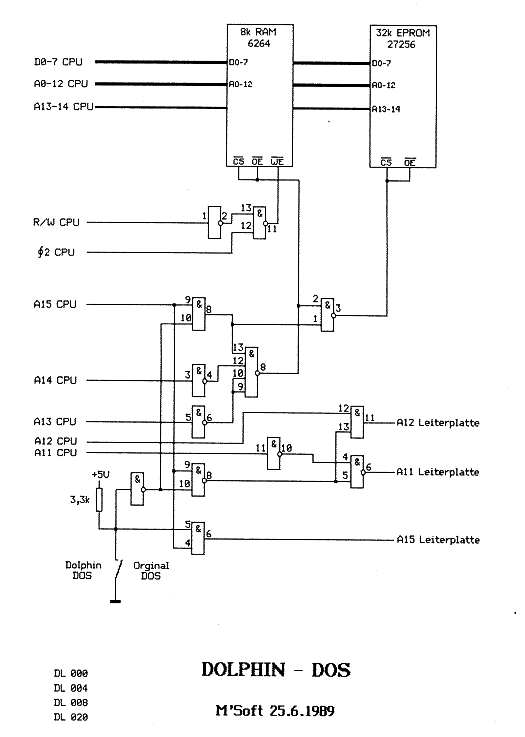 Dolphin-DOS war wohl neben Prologic-DOS der schnellste Hardware-Floppy-Speeder für den C64. Durch zusätzliche 8kB Ram in der Floppy konnte er in einer Umdrehung der Diskette den kompletten Track einlesen und mit dem Parallelkabel zum C64 übertragen. So wurden 202 Block (51kB) in sagenhaften 4,2 Sekunden geladen...