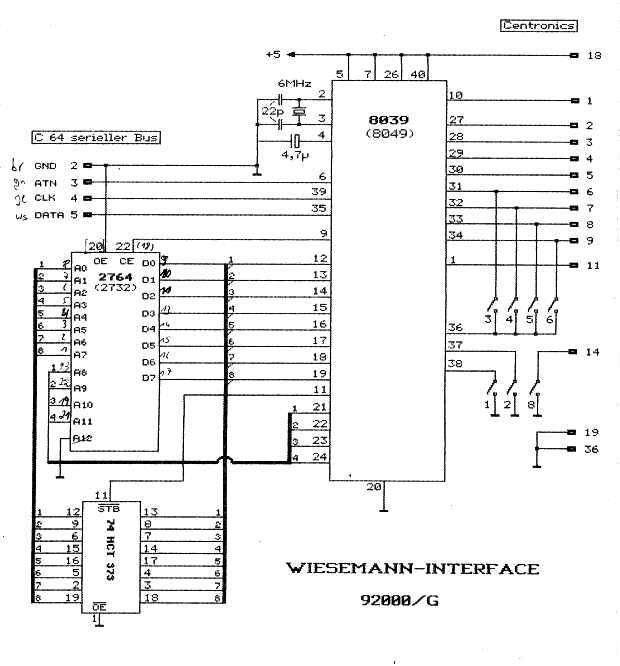 Das Wiesemann-Interface erlaubte es, einen üblichen Centronics-Drucker (z.B. die 63xx-Serie von Robotron, auch als Präsident bekannt) am normalen seriellen Port des 64er wie einen echten C64-Drucker zu verwenden. Da es im Linear-Mode auch direkt mit den Epson-Codes umgehen konnte, war z.B. ein Ausdruck aus PrintFox in sehr guter Auflösung möglich.